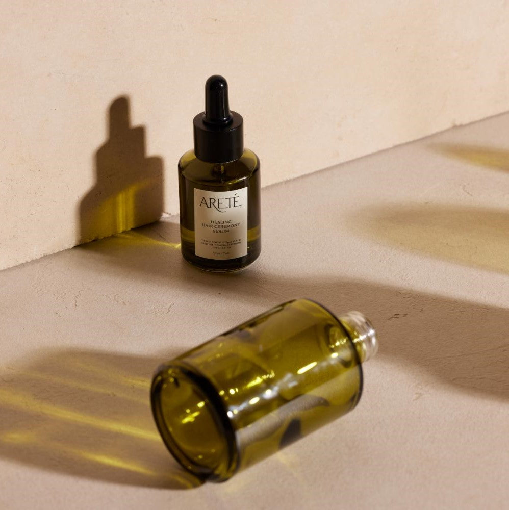 Our luxuriously light Healing Hair Ceremony Serum strengthens, smooths, and heals.